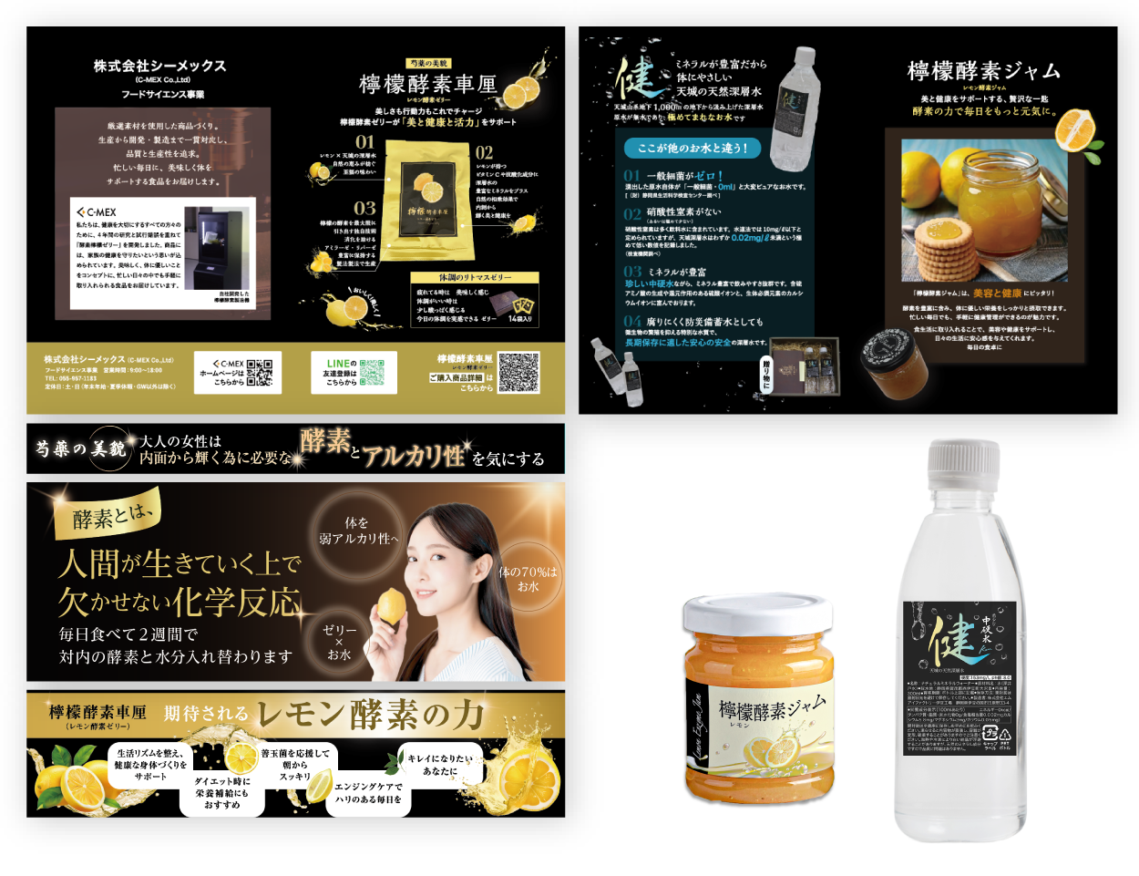 工場の自動化装置や省力化機器の設計・製作を手掛ける一方で、「フード・サイエンス事業」として、美容と健康をテーマにした自社ブランド「檸檬酵素ゼリー」を展開されている企業様です。 機械設計の技術力と食品の企画・製造を両立し、多角的な事業運営を行っています。「檸檬酵素ゼリー」の魅力を伝えるため、パンフレット、ラベル、宣伝用ステッカーのデザインを制作しました。