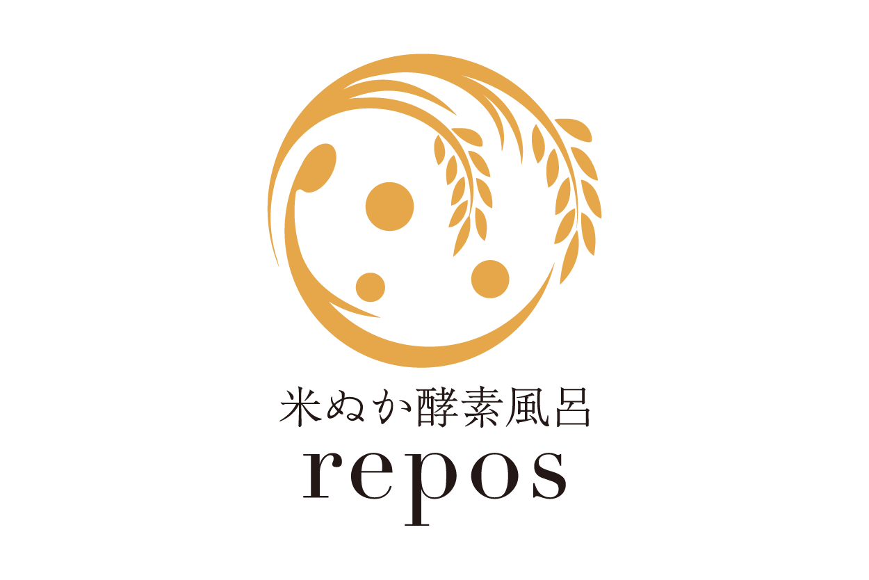 店名はフランス語で「休息・安らぎ」を意味する「repos(ルポ)」に由来しています。 米糠(こめぬか)酵素風呂でデトックスし、心身ともにリフレッシュできる場所でありたいという願いをロゴに込めました。